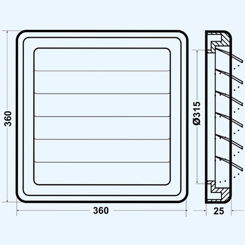 Решетка с гравитационными жалюзи ERA 3636К31,5Ф сер (360х360, d315) в интернет-магазине «ВЕНТФОМ». Заказать с доставкой! Тел.: +7 (925) 201-33-89.