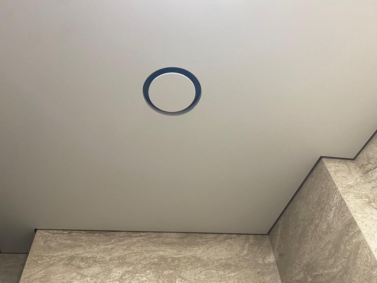Диффузор монтируется в одной плоскости с гипсокартоном, шпаклюется и красится в цвет потолка.